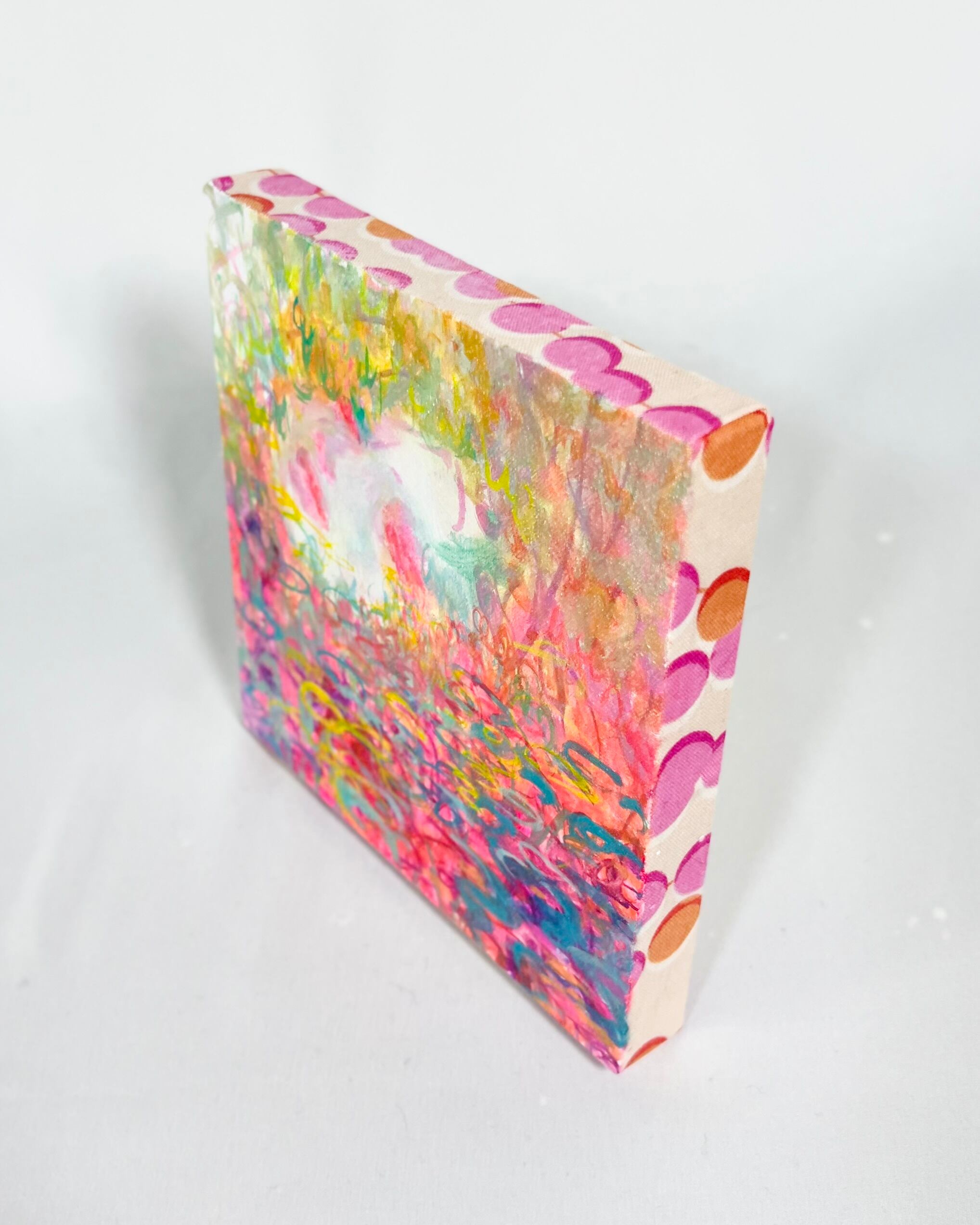 This work is painted on a patterned fabric